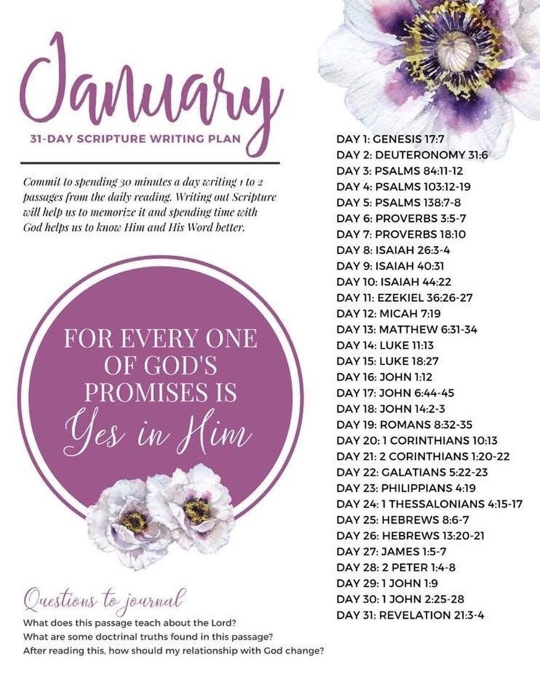 1. There are a multitude of resources online for monthly Scripture writing plans. I found a list I liked and saved a screenshot of it on my phone so I could find it easily each day. This particular plan was posted on Instagram by proverbs_31life.