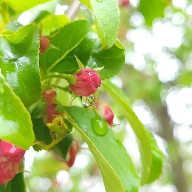 Raindrops on apple buds